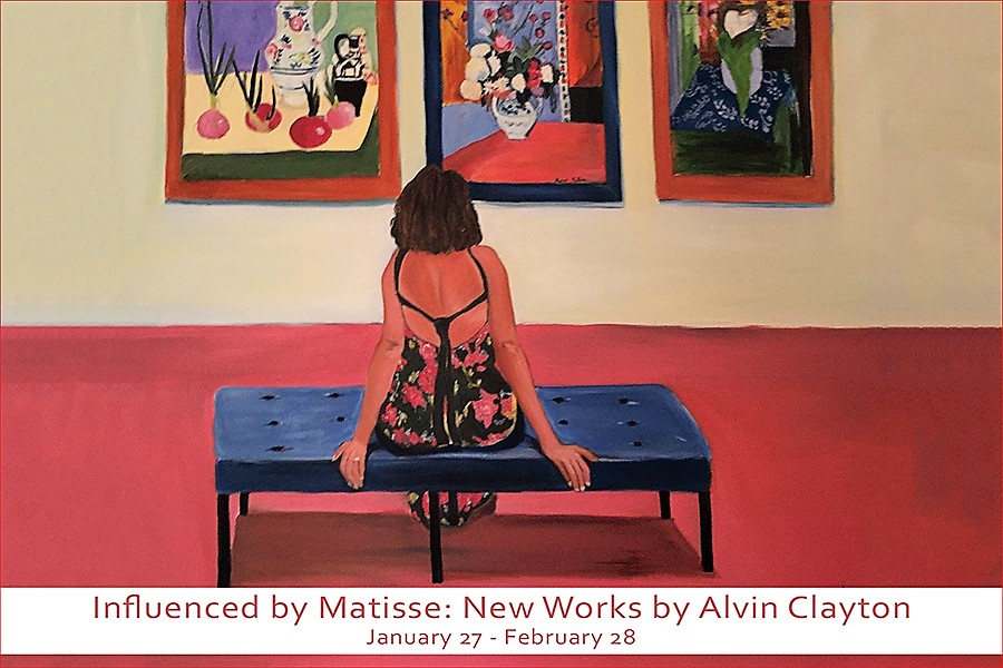 Show Card“Influenced by Matisse: New Works by Alvin Clayton” will be on exhibit at Iona College’s Brother Chapman Gallery from January 27th thru February 28th, 2019. Artist, restaurateur, and all-around Renaissance man Alvin Clayton presents a variety of recent works, all influenced by his admiration for the genius of Matisse. Opening reception/gallery talk on Sunday, January 27th from 4 to 6 pm at the Brother Chapman Gallery, 715 North Avenue, New Rochelle. Free.